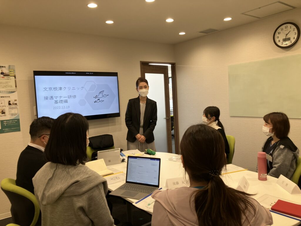 今回はリーダー職員からの提案により実現に至りました。バックグラウンドが様々な職員がいる中で、あらためて共通した「接遇」「マナー」を確認できる大変良い機会となりました。